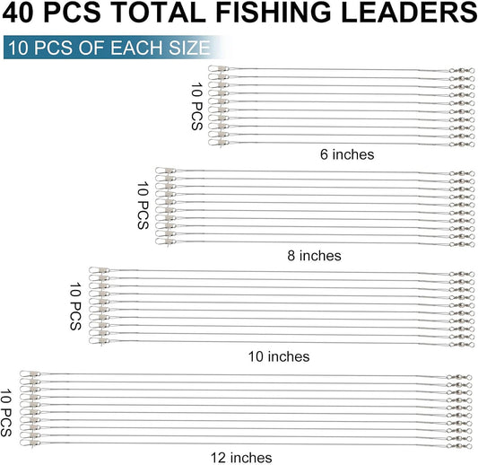 40Pcs Fishing Leaders, Upgrade Stainless Steel Leader, Premium Fish Wire Leaders, High-Strength Fishing Line Leader for Saltwater and Freshwater 4 Sizes, 6/8/10/12 Inches